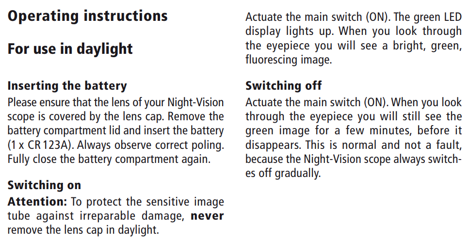 This guide will show you on how to use Minox NV 351 Night Vision Device