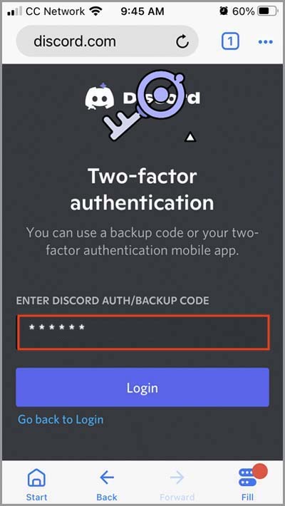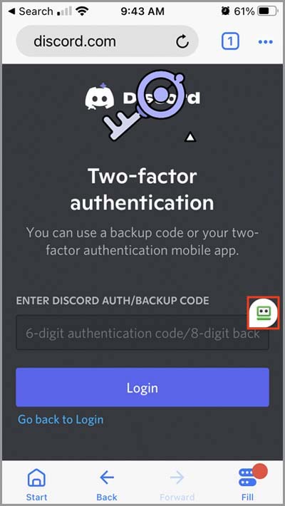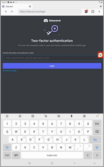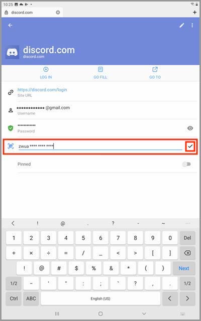 7) Enter the 2FA key you copied earlier into this window and tap the "☑" button on the right of the field.