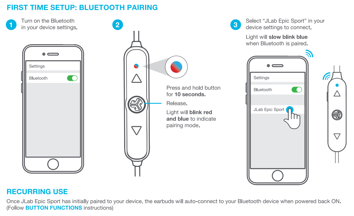 Now, let's take a look at the basic functions of your JLab Epic Sport: