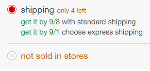 To check availability, simply add the item to your cart on the target.com website. Once you have added the item to your cart you will encounter one of three scenarios.